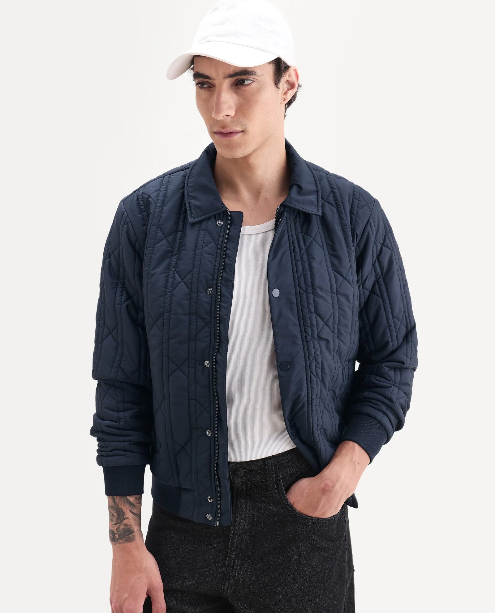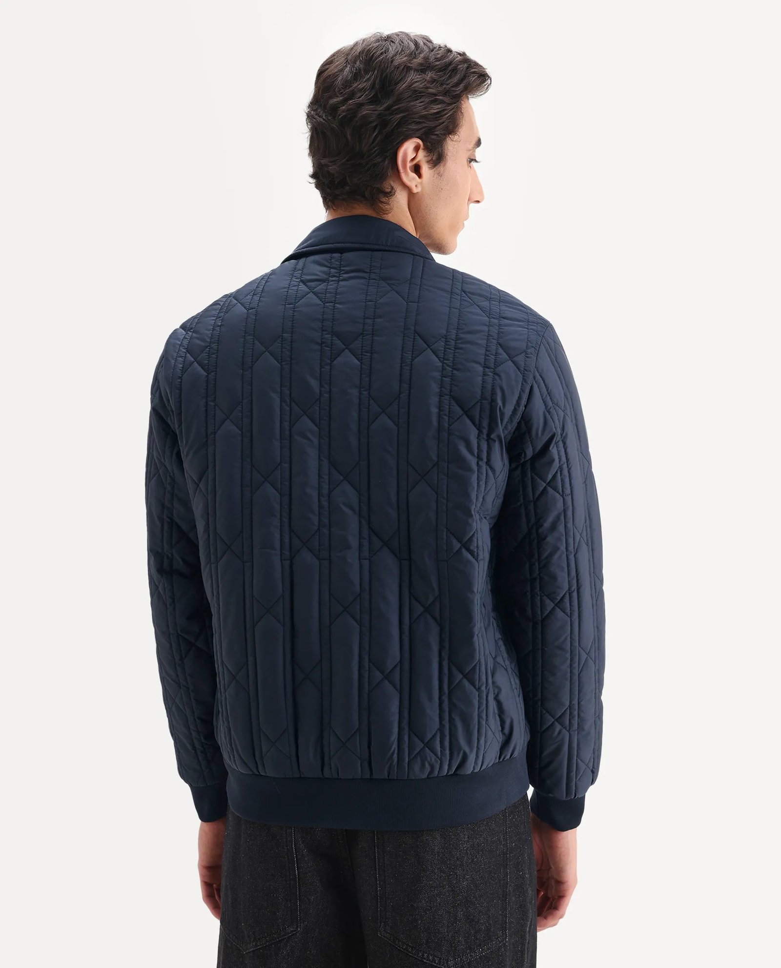 Crafted from durable polyester. the Rare Rabbit Men’s Boscod jacket offers a relaxed fit with a collared neck design. ensuring comfort and style. Its dark navy color paired with a subtle geometric print adds a modern. sophisticated edge suited for versatile wear. Ideal for layering. this jacket balances functionality with contemporary aesthetics.