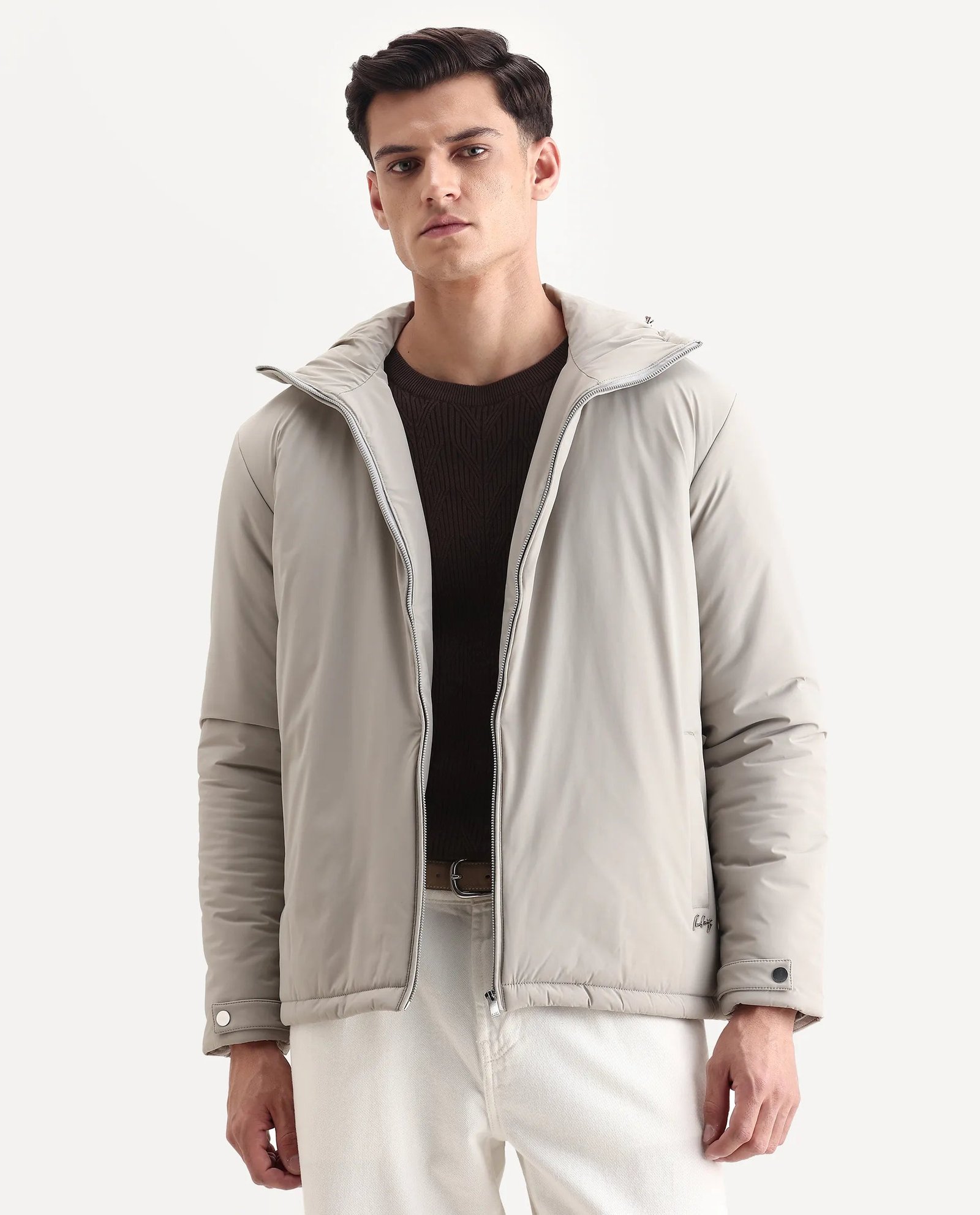 Rare Rabbit Men’s Kost jacket features a high neck and a relaxed fit for comfortable layering. Its plain design ensures versatile styling. making it ideal for casual and semi-formal occasions. Lightweight yet resilient. this jacket offers protection against mild weather while maintaining a sleek. understated look.
