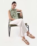 Elevate your wardrobe with this sophisticated Elcie Olive top featuring a distinctive mandarin collar and convenient tie-up closure. The carefully curated print adds visual interest while maintaining versatility for both casual and semi-formal occasions. Crafted for the discerning woman who appreciates refined details and practical elegance.