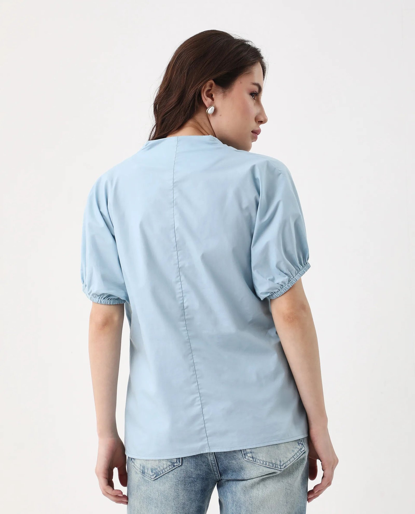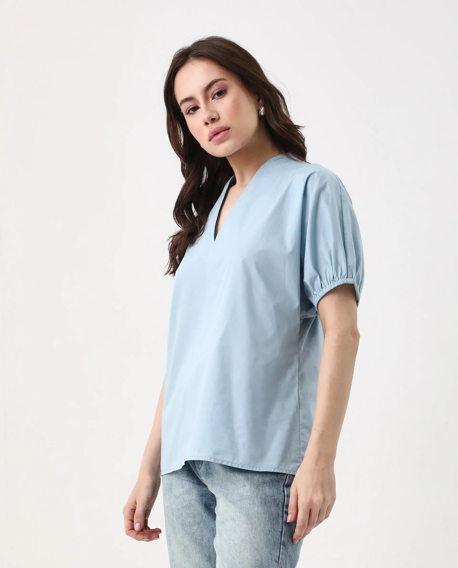 This Rareism Women Eldee Blue V-Neck Top features a pull on closure for easy dressing. offering convenience to busy women. The plain design allows for versatility and can be paired with any bottom. Expertly crafted with high quality material. this top guarantees both style and comfort.