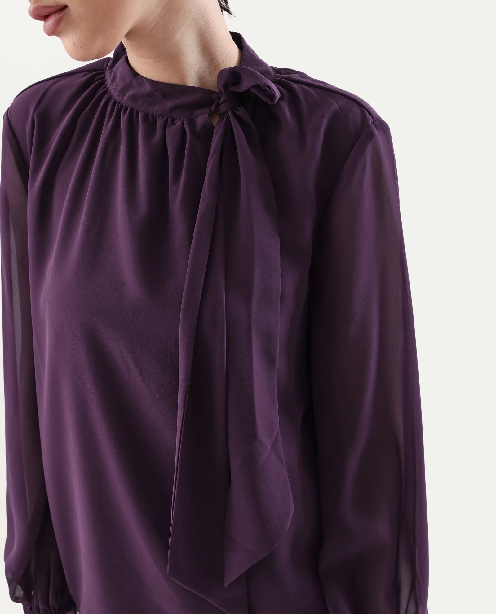 Elevate your wardrobe with this sophisticated Elden Maroon top featuring a distinctive tie-up neck and practical button closure. The clean. plain design offers versatile styling options while the rich maroon hue adds a touch of elegance. Crafted for the modern woman who appreciates refined simplicity and thoughtful details in her everyday attire.